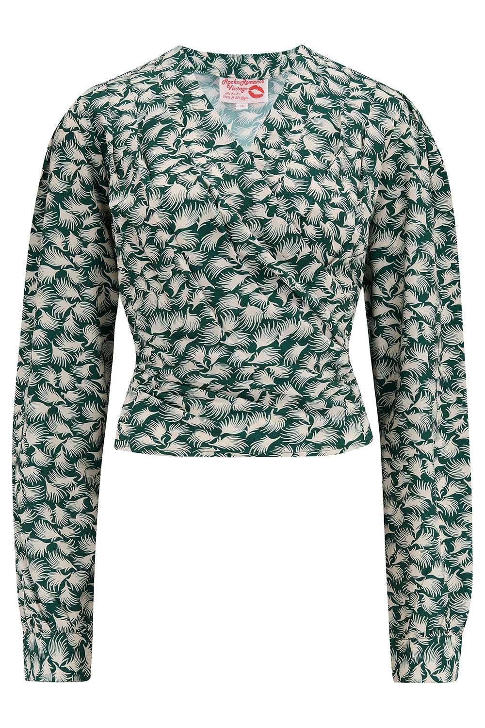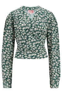 **Sample Sale** The "Darla" Long Sleeve Wrap Blouse in Green Whisp Print **End Of Line Item, When Its Gone Its Gone!!**