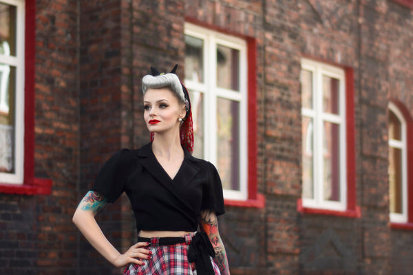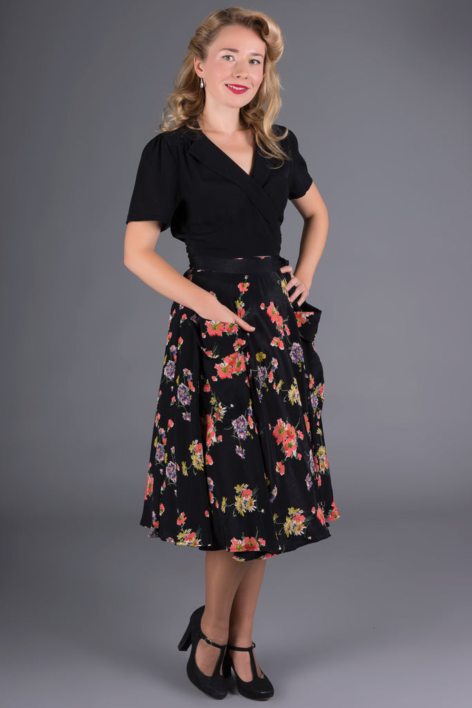 "Greta" Wrap Blouse in Black made by The Seamstress Of Bloomsbury, Classic 1940s Vintage Inspired Style