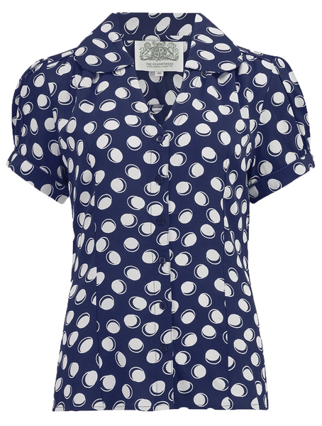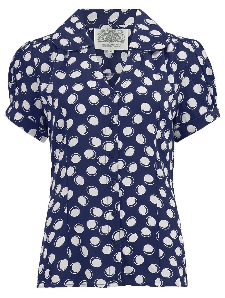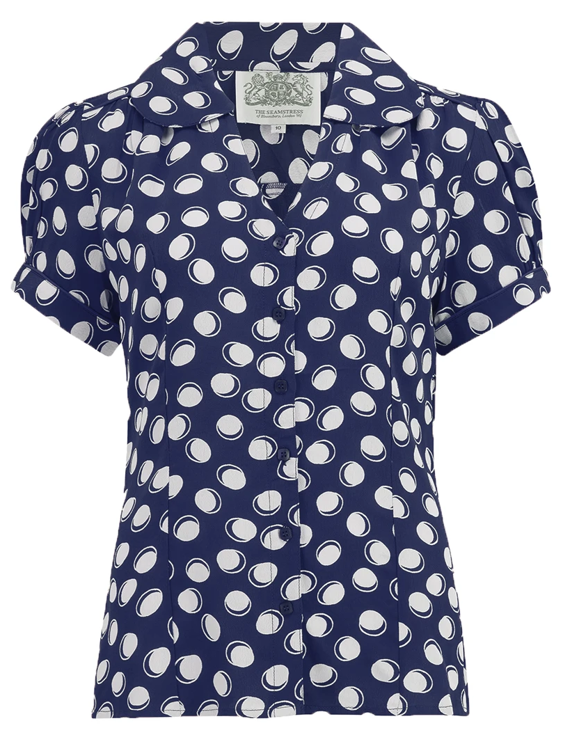 "Judy" Blouse in Navy Moonshine Spot, Classic 1940s Vintage Style