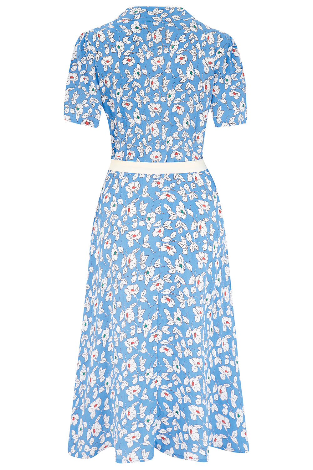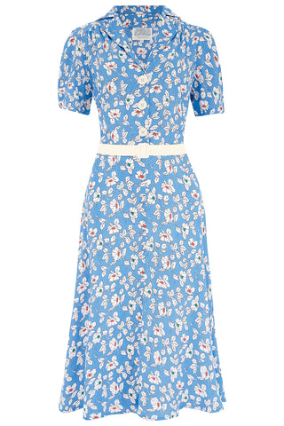 "Lisa" Shirt Dress in Palace Blue Pansy Print, Authentic 1940s Vintage Style Tea Dress at its Best By The Seamstress of Bloomsbury