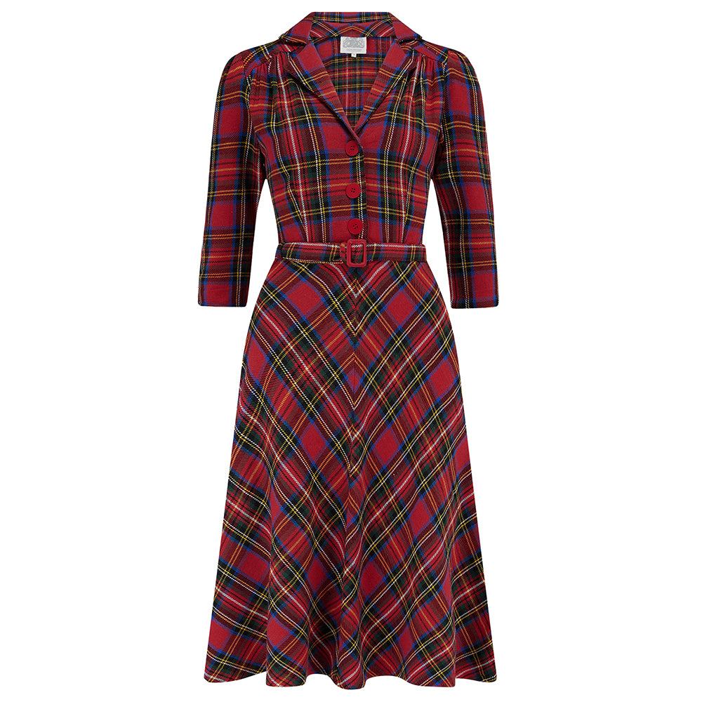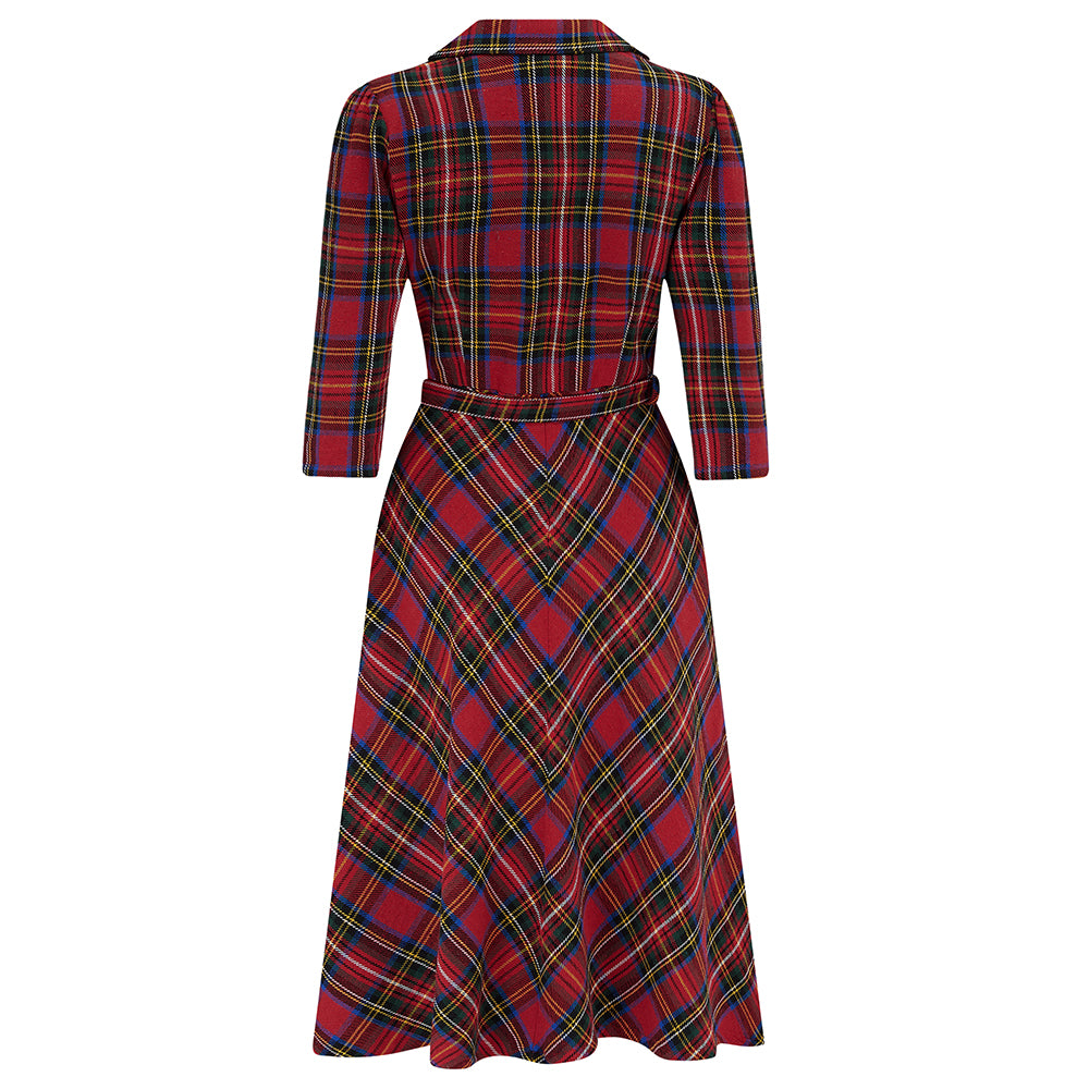 "Lisa" Shirt Dress with 3/4 Length Sleeves in Cotton Red Plaid Tartan , Authentic 1940s Vintage Tea Dress Style