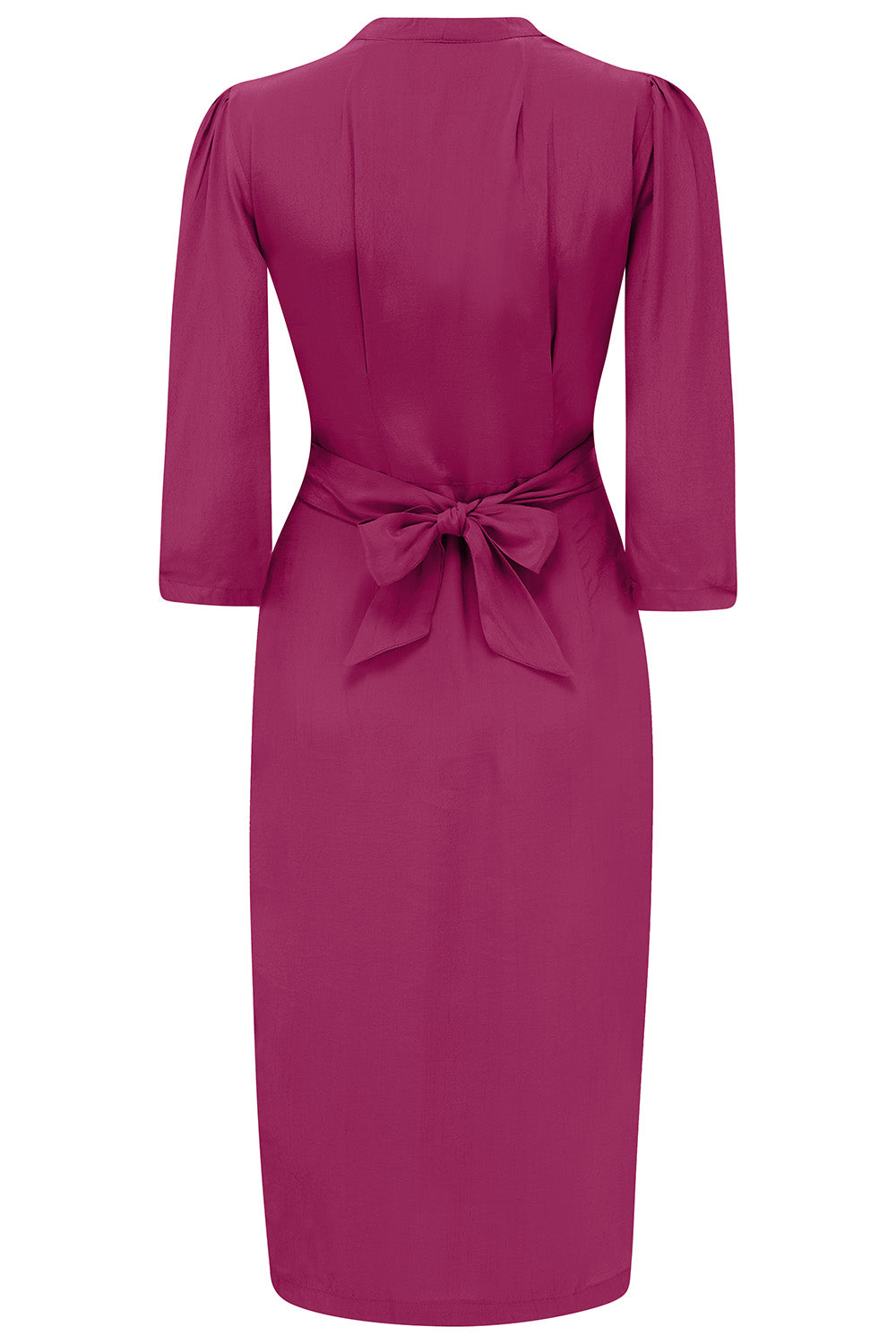 "Mabel" 3/4 Length Sleeve Waterfall Dress in Mulberry, A Classic 1940s Inspired Vintage Style