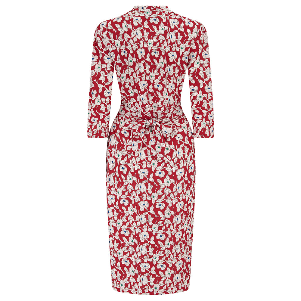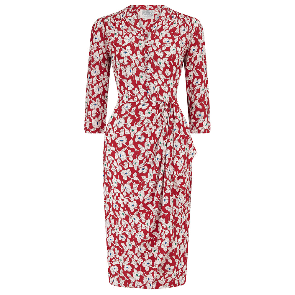 "Mabel" 3/4 Length Sleeve Waterfall Dress in Red Pansy, A Classic 1940s Inspired Vintage Style (Copy)