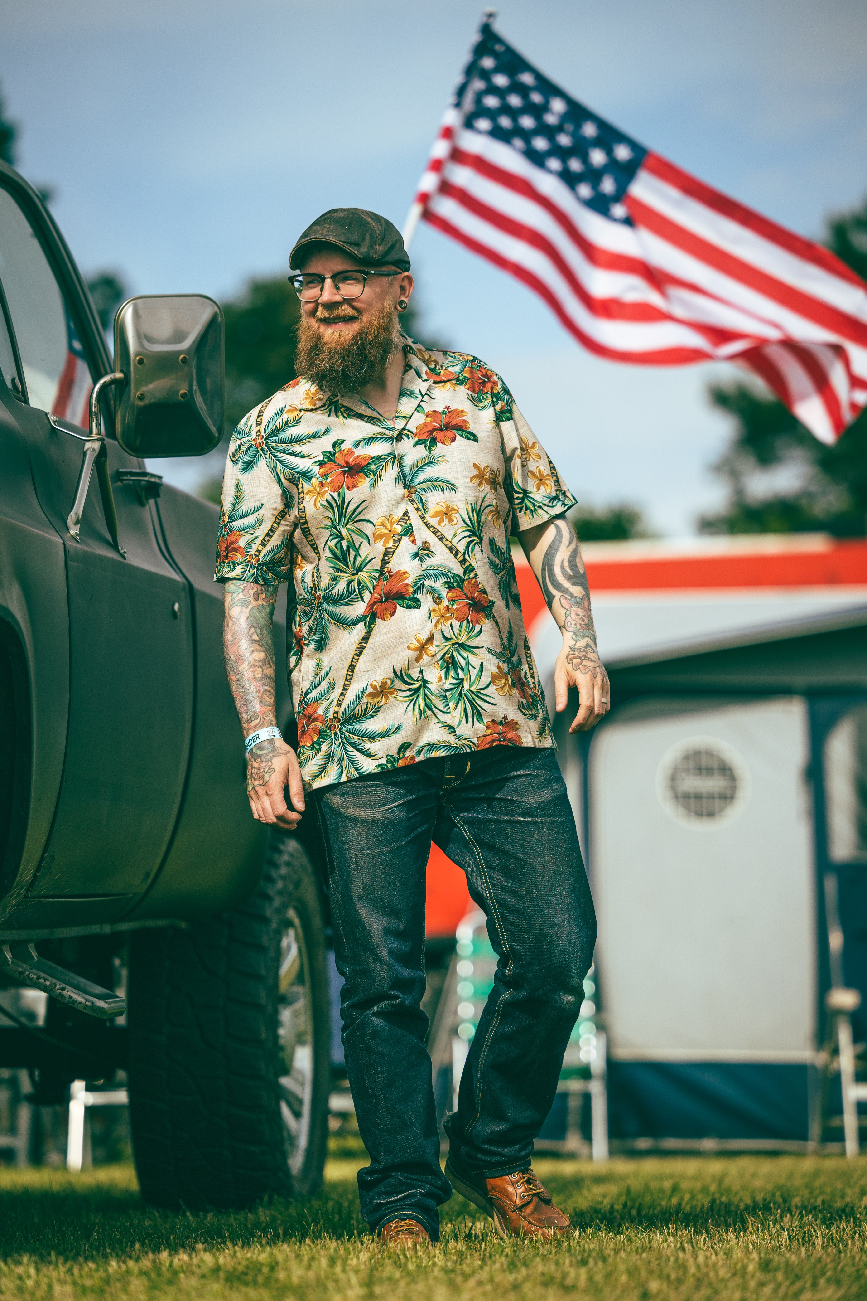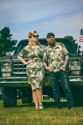 A Men's casual 1950s sport shirt .. Classic vintage men's leisurewear style. This short-sleeved, revere collar shirt is great for a casual weekend with jeans or khaki shorts. Alternatively, tuck it into your favourite pair of 50s pegs for a more late 1940s look, perfect for events and gigs.