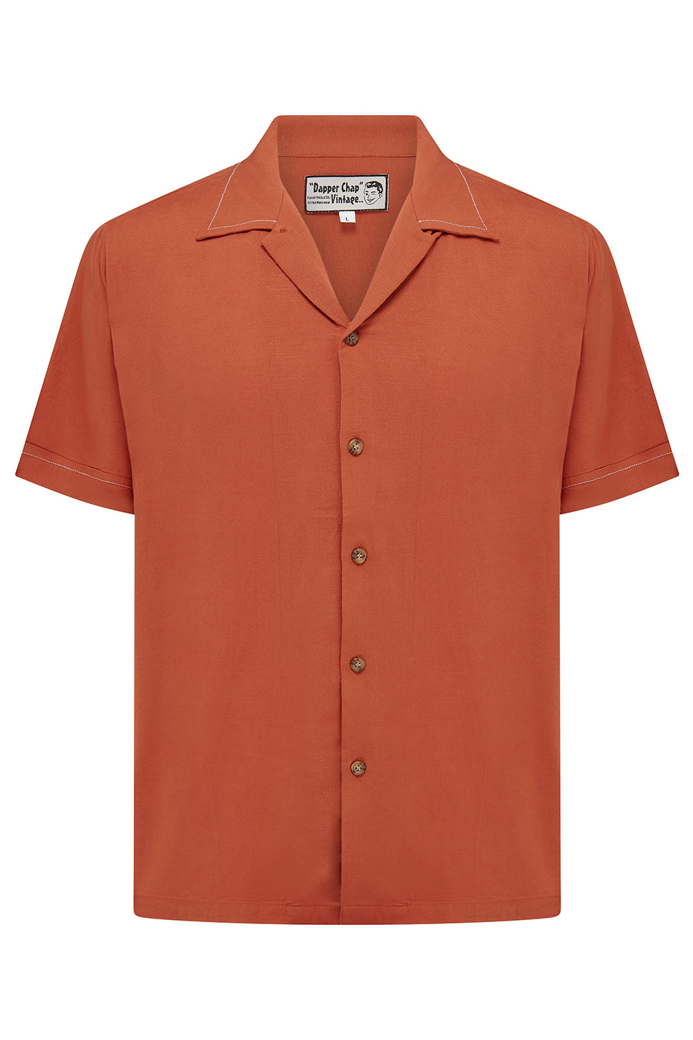 Mens "Cooper" Short Sleeved Shirt In Cinnamon With Contrast Saddle Stitch. 1950s Sport Shirt
