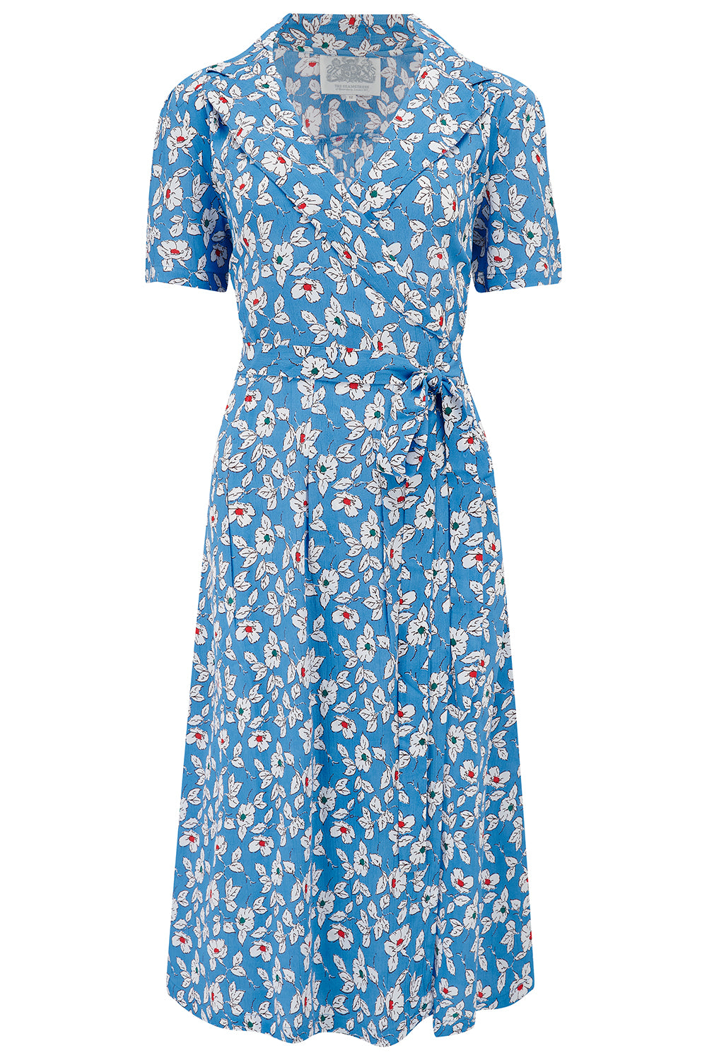 "Peggy" Wrap Dress Palace Pansy Print, Classic 1940s True Vintage Style