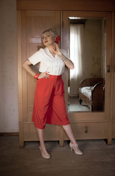 The "Sophia" Palazzo Culottes in Solid Red, Classic & Easy To Wear Vintage Inspired Style