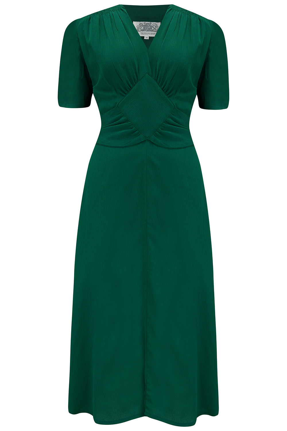 Ruby Dress in Hampton Green, A Classic & Authentic 1940s Vintage Inspired Style By The Seamstress Of Bloomsbury