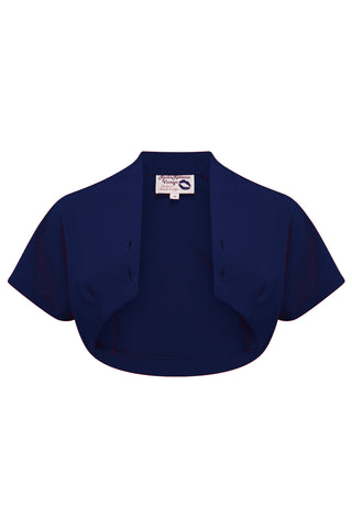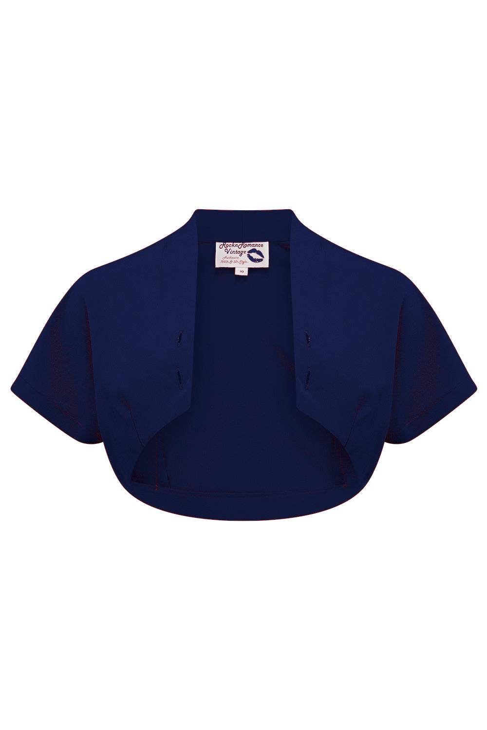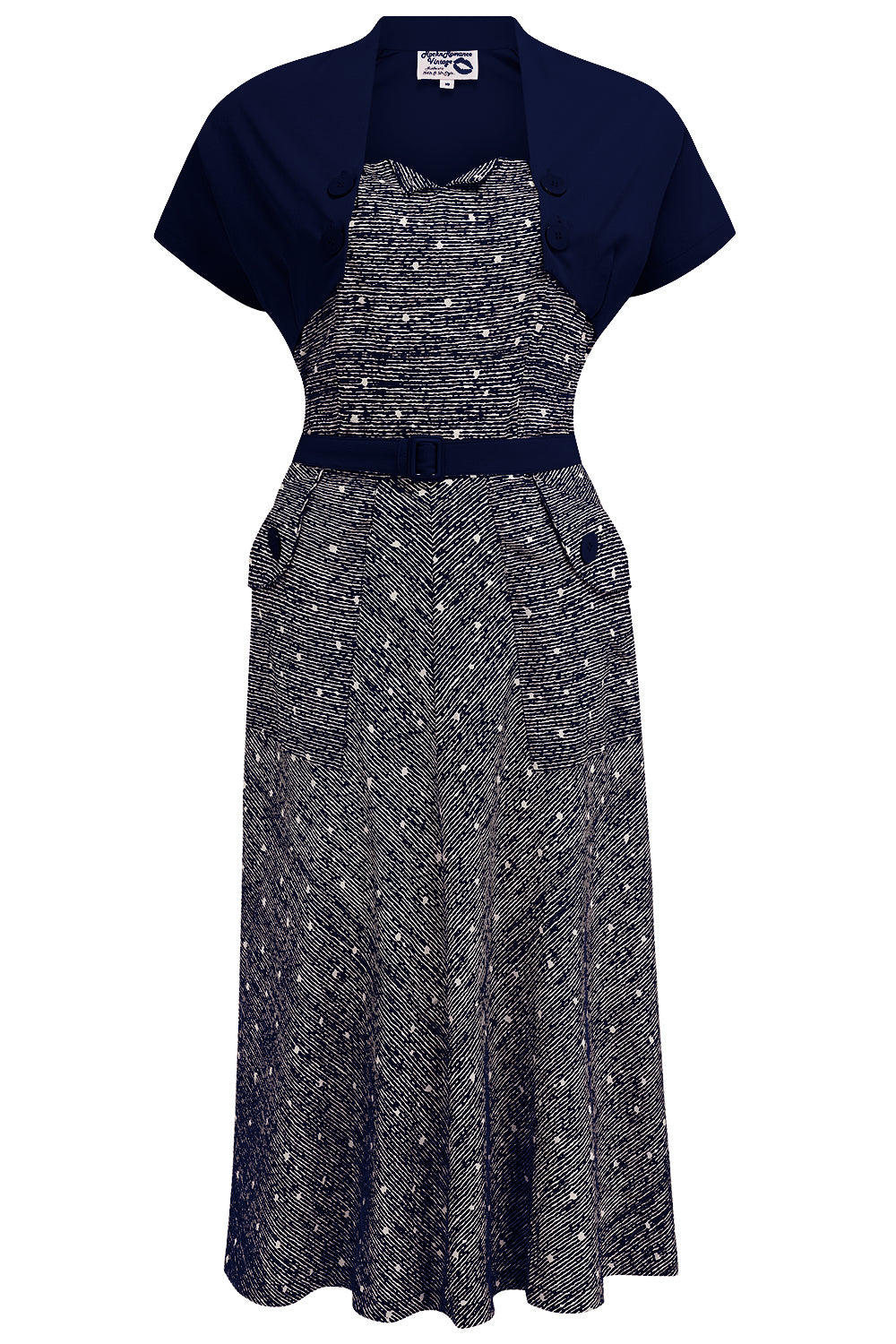 The "Ayda" 2pc Dress & Detachable Shrug Bolero Set In Navy Ditzy, True Vintage Style