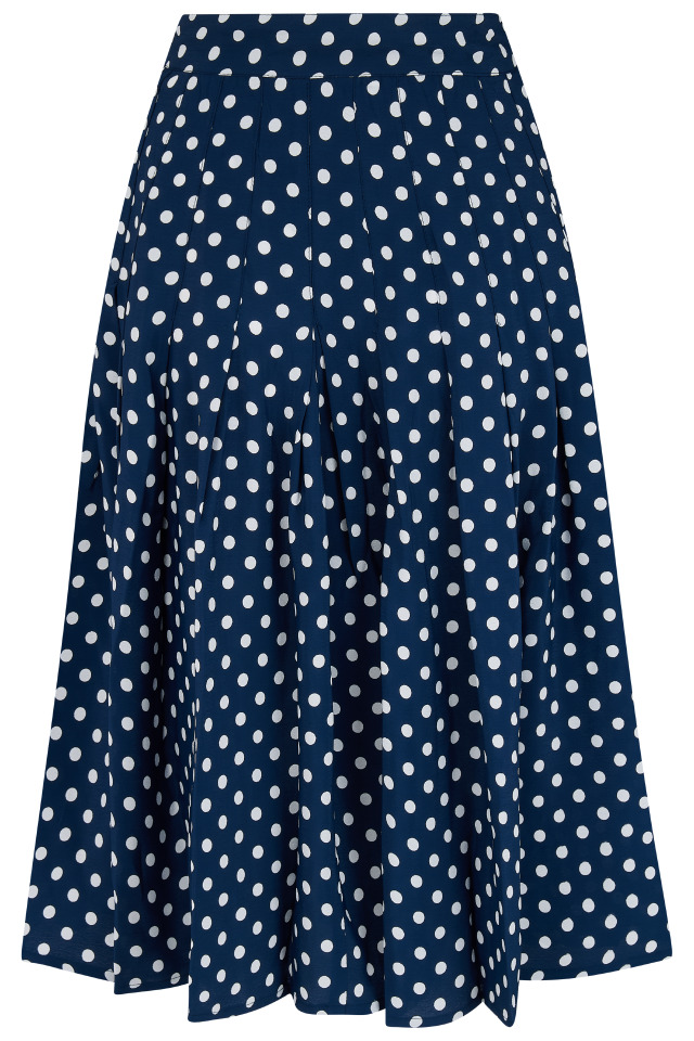 The "Lucille" Pleated Skirt in Navy Polka Dot, Classic & Authentic 1940s Vintage Inspired Style By The Seamstress of Bloomsbury